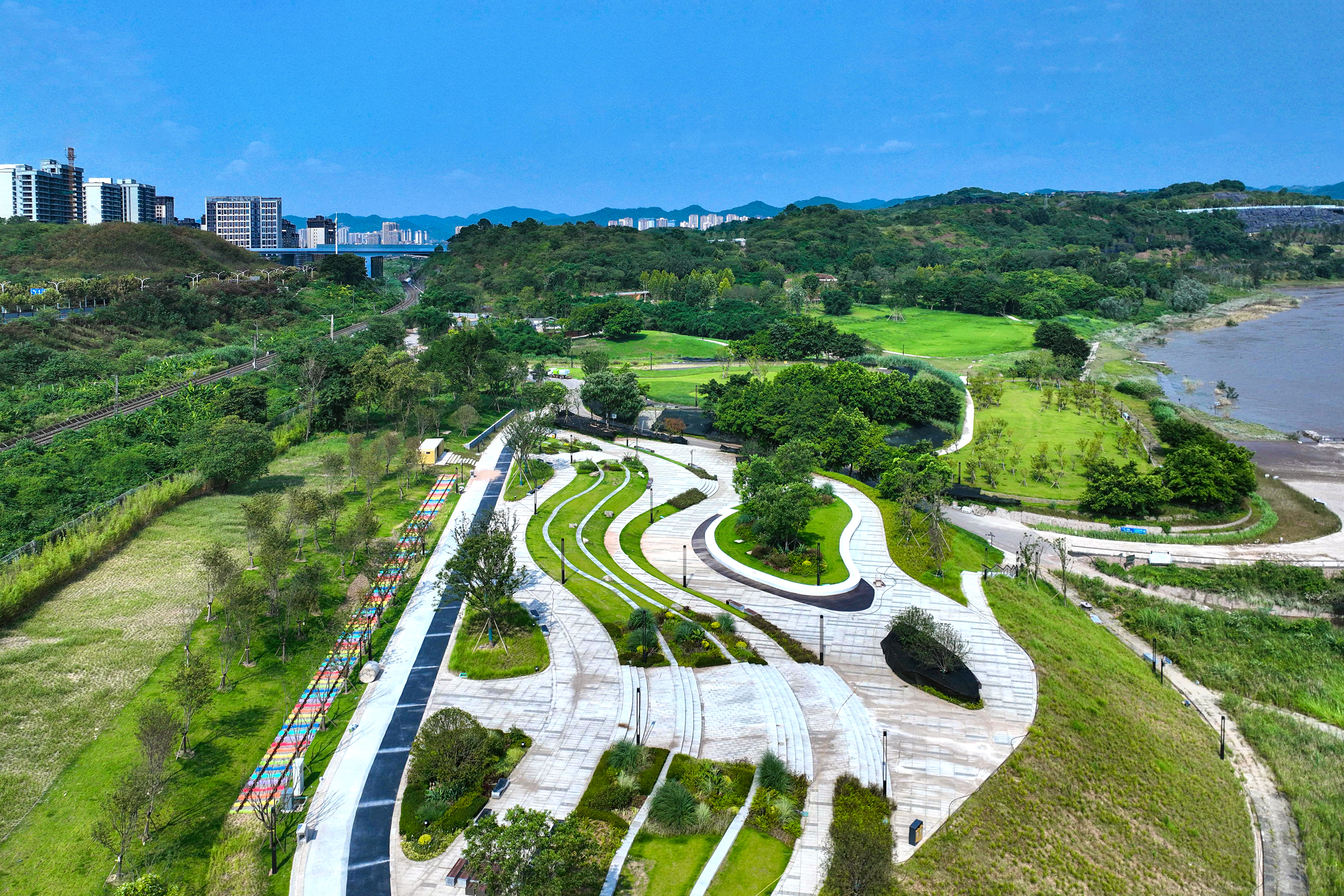 中冶建工承建的重慶“兩江四岸”治理提升長江北岸線延伸工程釣魚嘴濱江段項目,是重慶市重點工程,也是“兩江四岸”治理提升重點項目,全長約4.2公里,通過微改造,巧妙利用現(xiàn)有草海、森林、江灘等資源,彰顯原生態(tài)自然景觀,使生態(tài)美景連點成線,讓群眾享受更多開窗見景、推門見綠的城市空間,成為全國各地增植補綠、打造生態(tài)宜居城市的典范。